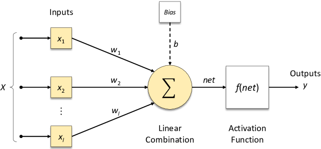 - Summation ($\Sigma$): A weighted sum of the inputs, plus a bias term.