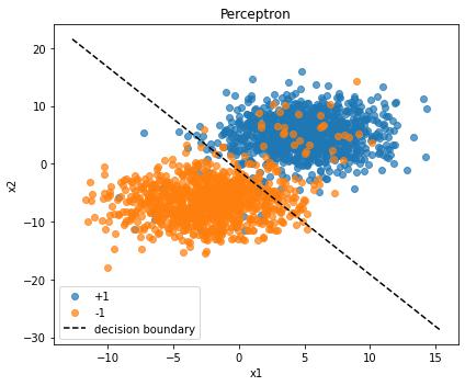 model = Perceptron(in_dim=2, lr=1.0)